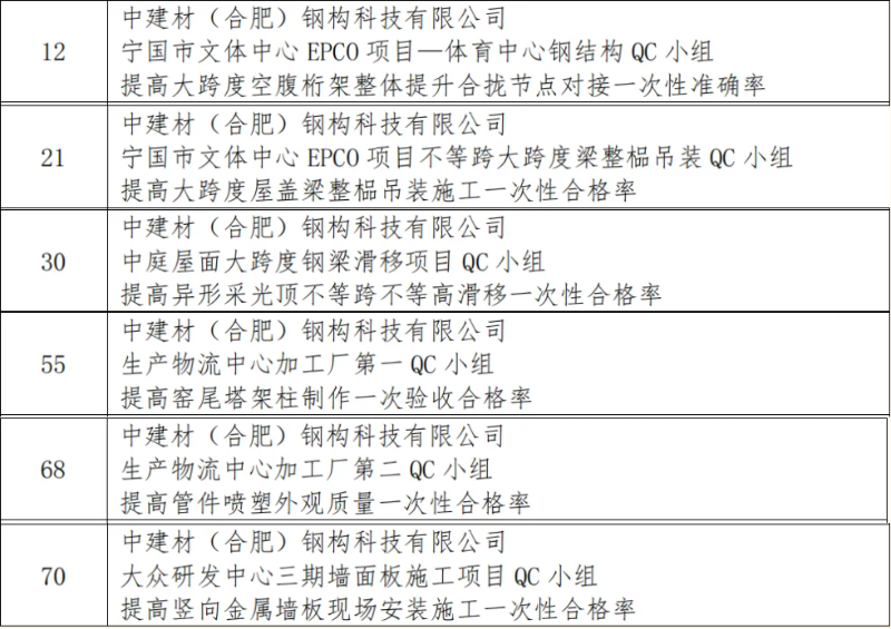 本次競賽旨在深入貫徹落實(shí)《質(zhì)量強(qiáng)國建設(shè)綱要》精神,引導(dǎo)鋼木建筑行業(yè)企業(yè)科學(xué)運(yùn)用先進(jìn)質(zhì)量管理方法,全面提升工程質(zhì)量管理水平。全國各地眾多鋼木建筑企業(yè)踴躍參賽,競爭異常激烈。公司高度重視此次競賽,精心組織內(nèi)部質(zhì)量管理小組進(jìn)行成果申報(bào)。最終,公司多個(gè)質(zhì)量管理小組的項(xiàng)目成果在一眾參賽作品中成功突圍。其中,合肥經(jīng)開區(qū)云海路產(chǎn)業(yè)園項(xiàng)目QC小組的“提高 PC 梁與鋼筋桁架樓承板連接安裝一次性合格率”課題榮獲二等獎(jiǎng)。該成果聚焦鋼桁梁底部作業(yè)難題,通過技術(shù)創(chuàng)新,大幅提高了施工效率與安全性,為業(yè)內(nèi)同類工程提供了極具價(jià)值的實(shí)踐范例。此外,中建材鋼構(gòu)公司還有6項(xiàng)成果榮獲三等獎(jiǎng),獲獎(jiǎng)成果覆蓋鋼結(jié)構(gòu)制造、安裝以及施工工藝優(yōu)化等多個(gè)領(lǐng)域,均是公司質(zhì)量管理小組在實(shí)際工程項(xiàng)目中,運(yùn)用科學(xué)方法,深耕技術(shù)創(chuàng)新與質(zhì)量改進(jìn)工作的結(jié)晶。